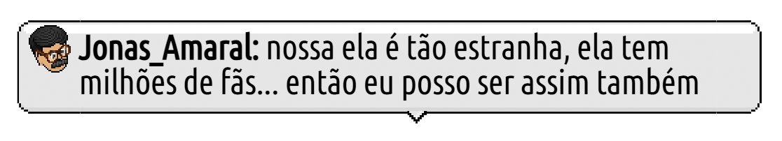 Assim, se pixelvestir-se no jogo nunca foi tanto uma questão a ser levada por Jonas para fora do mundinho virtual de forma negativa. Os conflitos se davam até mesmo dentro dos próprios quartos do Habbo, e nem tanto por questões de gênero ou sexualidade. Se explicar demais, é daí que vem todos os problemas para ele.